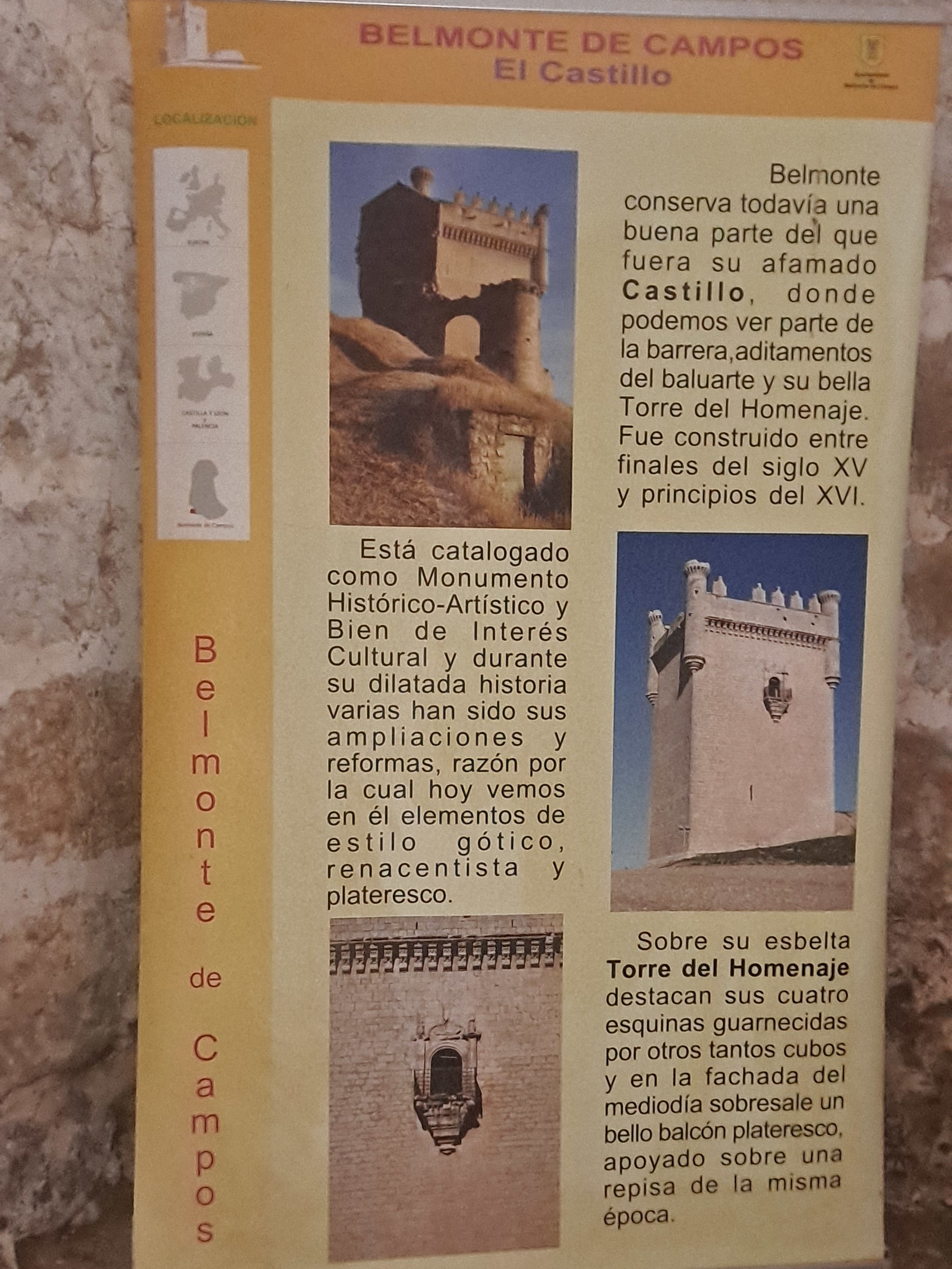 Nos dirigiremos a Belmonte de Campos, andando, allí veremos la torre del castillo y al que podremos subir para divisar el entorno de Tierra de Campos. En este mismo pueblo aprovecharemos para comer.
